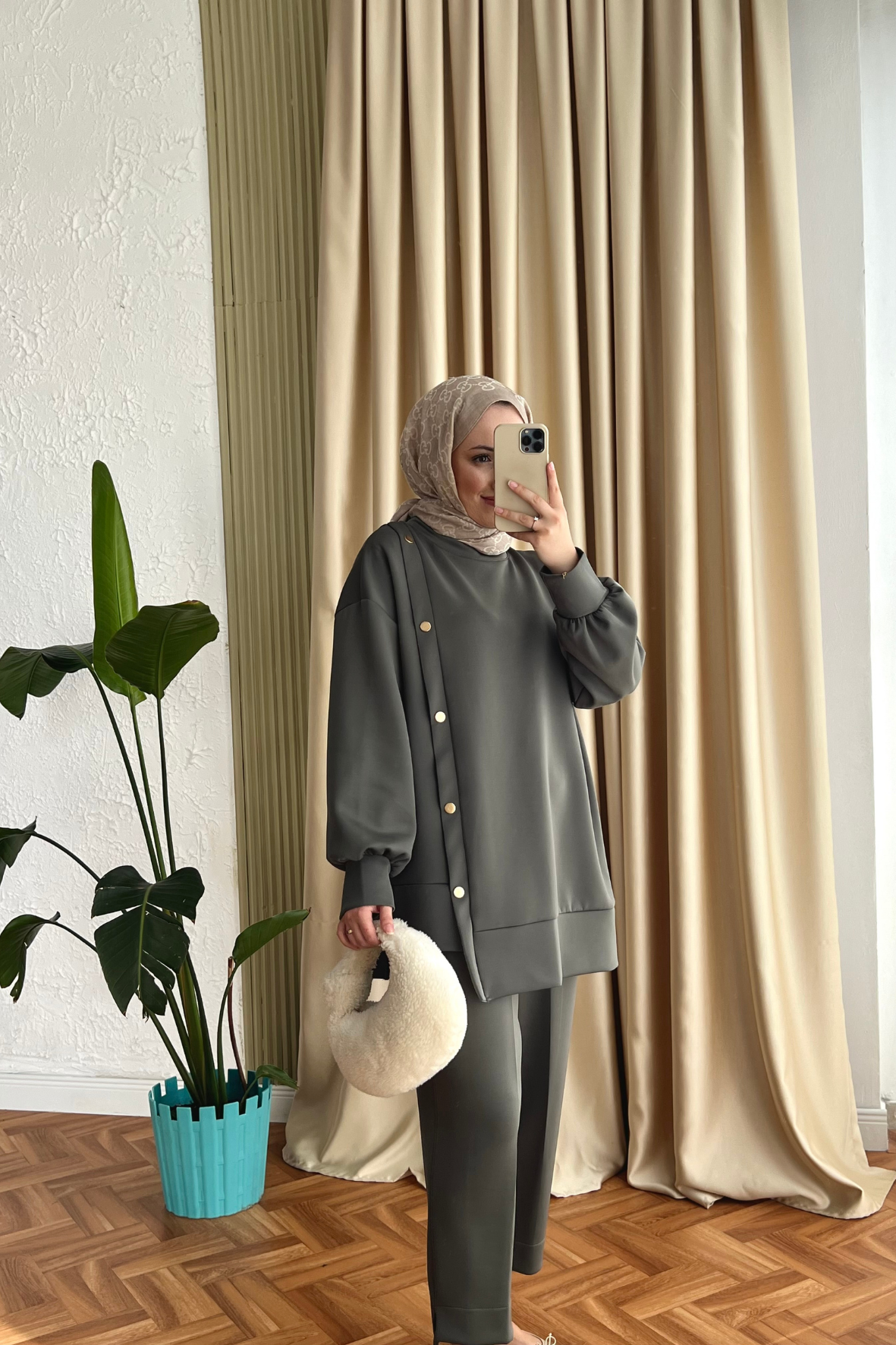 Aler Scuba Takım-haki - Vakronline modelleri Vakronline tesettür giyim koleksiyonunun en şık parçaları arasında yer alıyor. Modern tasarımı ve rahat kalıbı ile hem günlük yaşamda hem de özel günlerde tercih ediliyor. Vakronline kalitesiyle sunulan bu ürün, zarif detayları ve kumaş kalitesi ile kullanıcıların beğenisini kazanıyor. Yeni sezon trendlerini yansıtan bu parçalar ile stilinize tesettür modasında şıklık katabilirsiniz. Vakronline güvencesiyle hızlı kargo ve kolay iade imkânı da sizleri bekliyor.