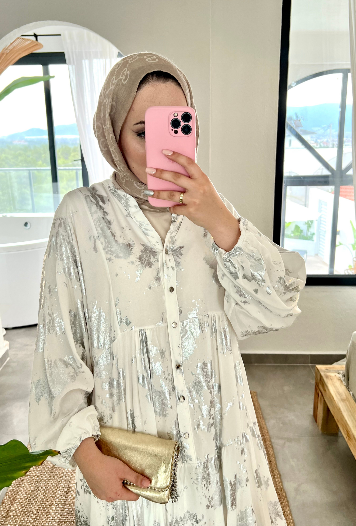 Beymen Gri Simli Viskon Elbise-beyaz - Vakronline modelleri Vakronline tesettür giyim koleksiyonunun en şık parçaları arasında yer alıyor. Modern tasarımı ve rahat kalıbı ile hem günlük yaşamda hem de özel günlerde tercih ediliyor. Vakronline kalitesiyle sunulan bu ürün, zarif detayları ve kumaş kalitesi ile kullanıcıların beğenisini kazanıyor. Yeni sezon trendlerini yansıtan bu parçalar ile stilinize tesettür modasında şıklık katabilirsiniz. Vakronline güvencesiyle hızlı kargo ve kolay iade imkânı da sizleri bekliyor.