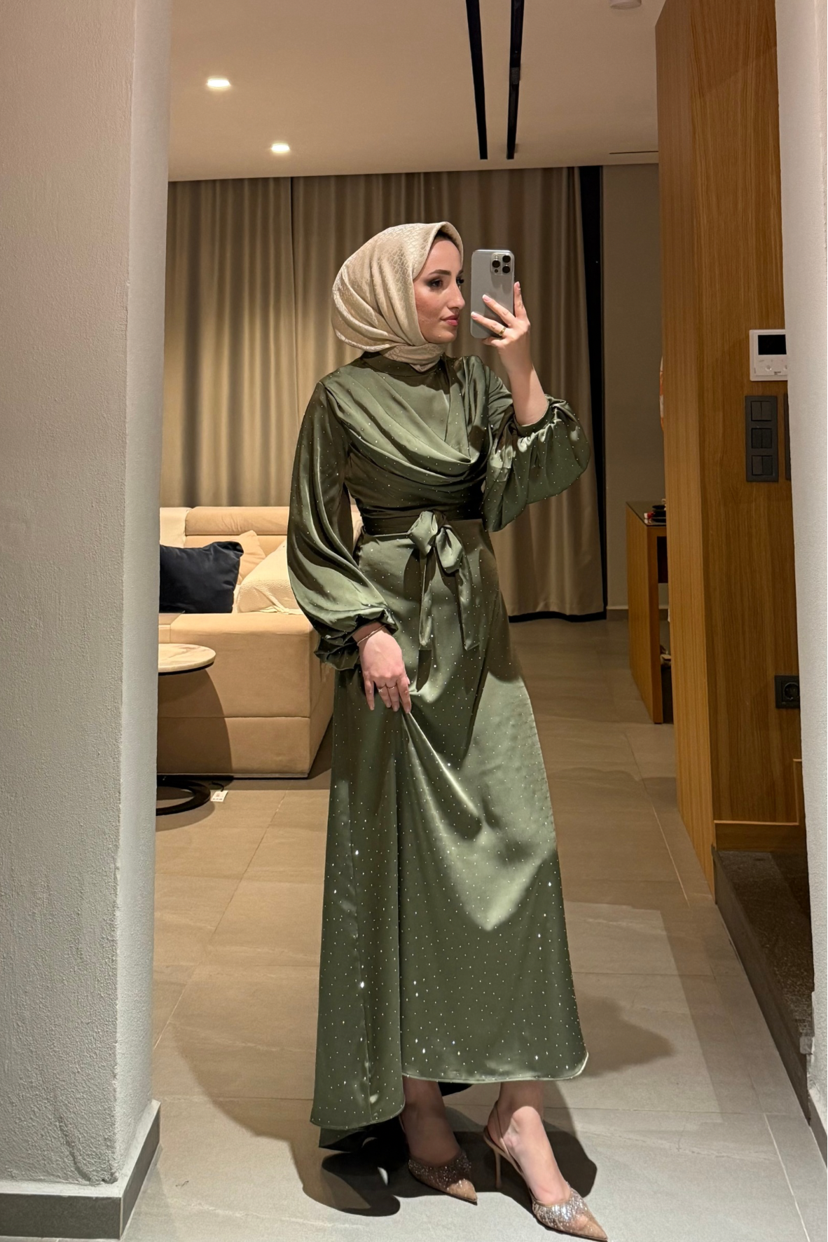 Drapeli ışıltılı elbise-Haki modelleri Vakronline tesettür giyim koleksiyonunun en şık parçaları arasında yer alıyor. Modern tasarımı ve rahat kalıbı ile hem günlük yaşamda hem de özel günlerde tercih ediliyor. Vakronline kalitesiyle sunulan bu ürün, zarif detayları ve kumaş kalitesi ile kullanıcıların beğenisini kazanıyor. Yeni sezon trendlerini yansıtan bu parçalar ile stilinize tesettür modasında şıklık katabilirsiniz. Vakronline güvencesiyle hızlı kargo ve kolay iade imkânı da sizleri bekliyor.