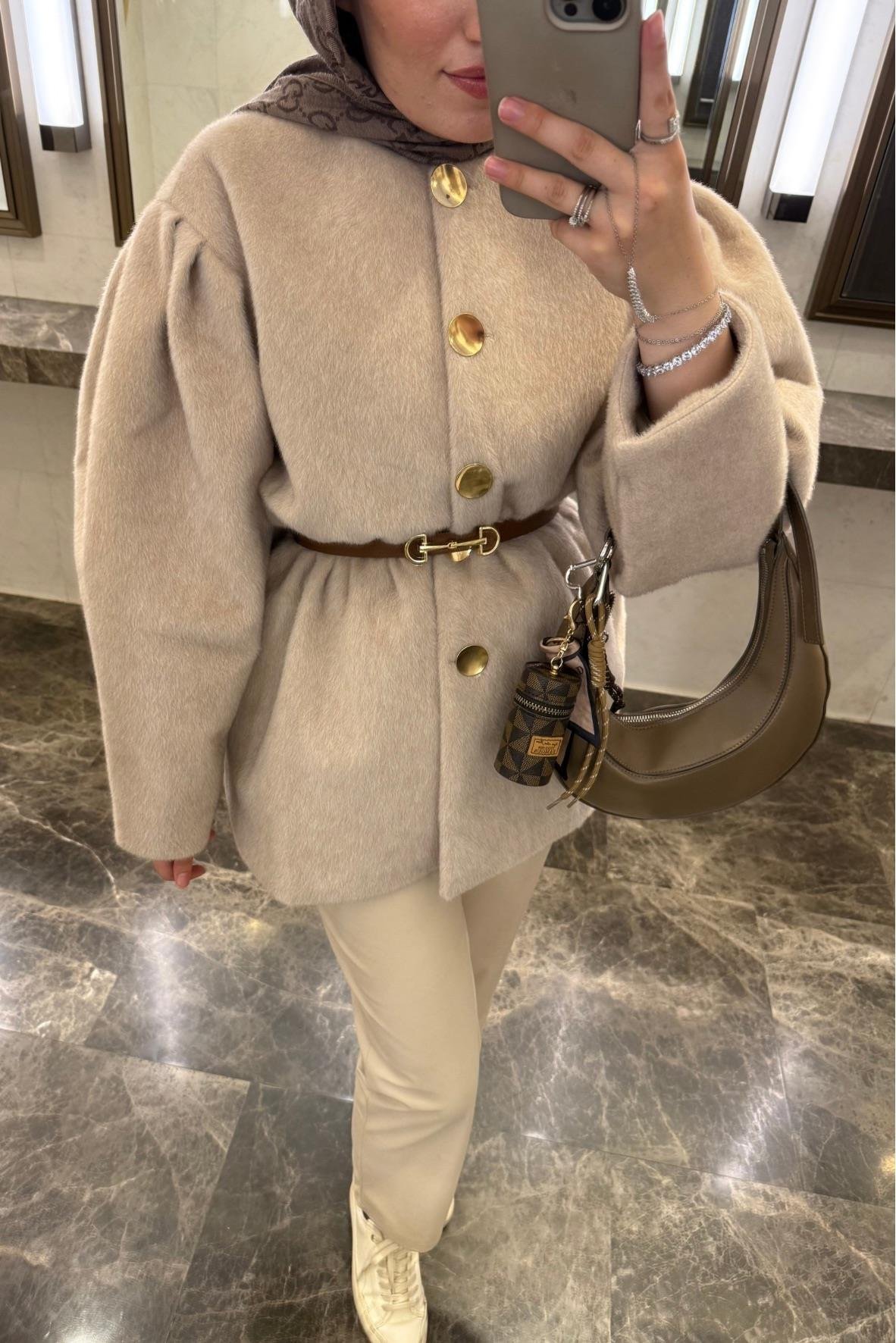 Gold fox Beli lastikli ceket-bej