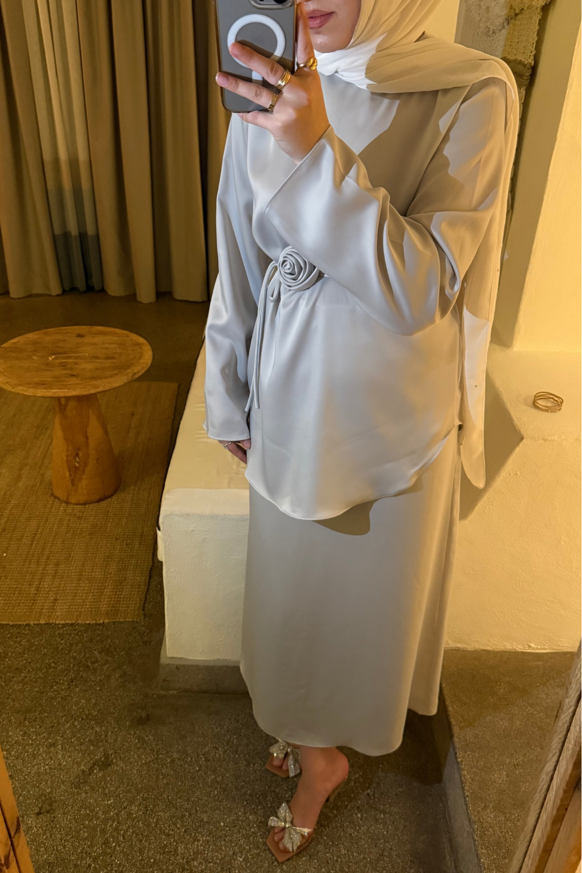 Gül Aksesuarlı Saten İkili Takım-gri - Vakronline modelleri Vakronline tesettür giyim koleksiyonunun en şık parçaları arasında yer alıyor. Modern tasarımı ve rahat kalıbı ile hem günlük yaşamda hem de özel günlerde tercih ediliyor. Vakronline kalitesiyle sunulan bu ürün, zarif detayları ve kumaş kalitesi ile kullanıcıların beğenisini kazanıyor. Yeni sezon trendlerini yansıtan bu parçalar ile stilinize tesettür modasında şıklık katabilirsiniz. Vakronline güvencesiyle hızlı kargo ve kolay iade imkânı da sizleri bekliyor.
