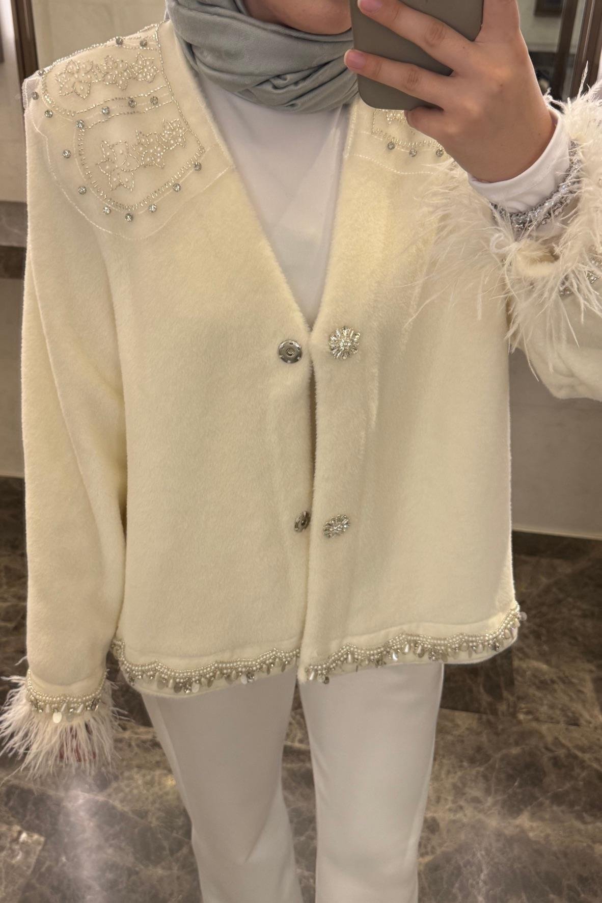 Yaka, kol ve alt kısım boncuk taş işlemelidir.