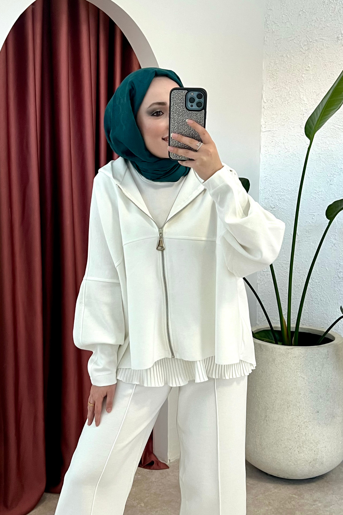 Kapüşonlu Ikili Takım-beyaz - Vakronline modelleri Vakronline tesettür giyim koleksiyonunun en şık parçaları arasında yer alıyor. Modern tasarımı ve rahat kalıbı ile hem günlük yaşamda hem de özel günlerde tercih ediliyor. Vakronline kalitesiyle sunulan bu ürün, zarif detayları ve kumaş kalitesi ile kullanıcıların beğenisini kazanıyor. Yeni sezon trendlerini yansıtan bu parçalar ile stilinize tesettür modasında şıklık katabilirsiniz. Vakronline güvencesiyle hızlı kargo ve kolay iade imkânı da sizleri bekliyor.