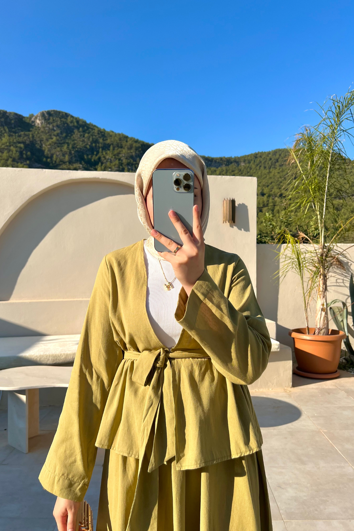 Keten Etekli Takım-yağ Yeşili - Vakronline modelleri Vakronline tesettür giyim koleksiyonunun en şık parçaları arasında yer alıyor. Modern tasarımı ve rahat kalıbı ile hem günlük yaşamda hem de özel günlerde tercih ediliyor. Vakronline kalitesiyle sunulan bu ürün, zarif detayları ve kumaş kalitesi ile kullanıcıların beğenisini kazanıyor. Yeni sezon trendlerini yansıtan bu parçalar ile stilinize tesettür modasında şıklık katabilirsiniz. Vakronline güvencesiyle hızlı kargo ve kolay iade imkânı da sizleri bekliyor.