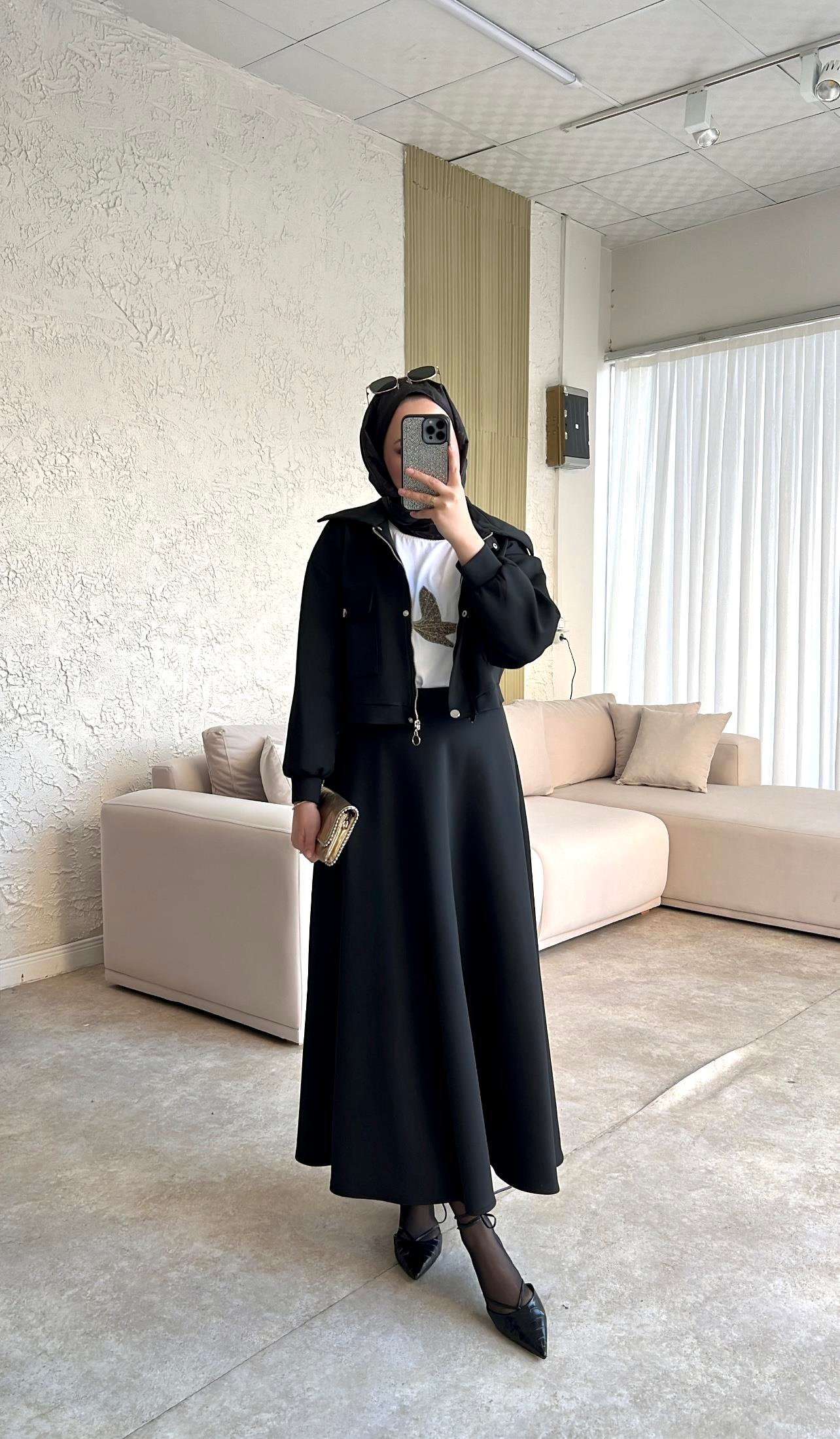 Lara Scuba Etekli İkili Takım-siyah - Vakronline modelleri Vakronline tesettür giyim koleksiyonunun en şık parçaları arasında yer alıyor. Modern tasarımı ve rahat kalıbı ile hem günlük yaşamda hem de özel günlerde tercih ediliyor. Vakronline kalitesiyle sunulan bu ürün, zarif detayları ve kumaş kalitesi ile kullanıcıların beğenisini kazanıyor. Yeni sezon trendlerini yansıtan bu parçalar ile stilinize tesettür modasında şıklık katabilirsiniz. Vakronline güvencesiyle hızlı kargo ve kolay iade imkânı da sizleri bekliyor.