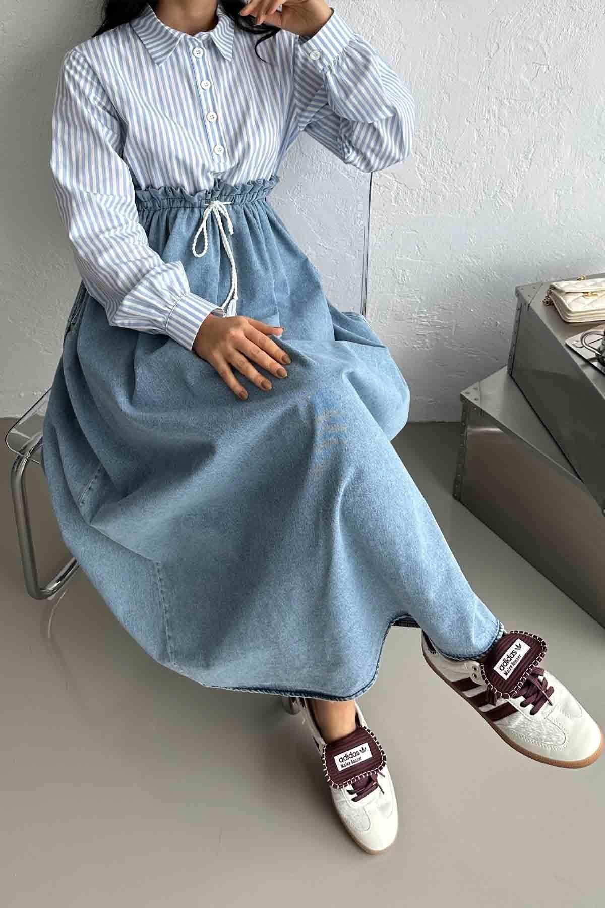 Mavi Denim Elsa Gömlek Elbise - Vakronline modelleri Vakronline tesettür giyim koleksiyonunun en şık parçaları arasında yer alıyor. Modern tasarımı ve rahat kalıbı ile hem günlük yaşamda hem de özel günlerde tercih ediliyor. Vakronline kalitesiyle sunulan bu ürün, zarif detayları ve kumaş kalitesi ile kullanıcıların beğenisini kazanıyor. Yeni sezon trendlerini yansıtan bu parçalar ile stilinize tesettür modasında şıklık katabilirsiniz. Vakronline güvencesiyle hızlı kargo ve kolay iade imkânı da sizleri bekliyor.