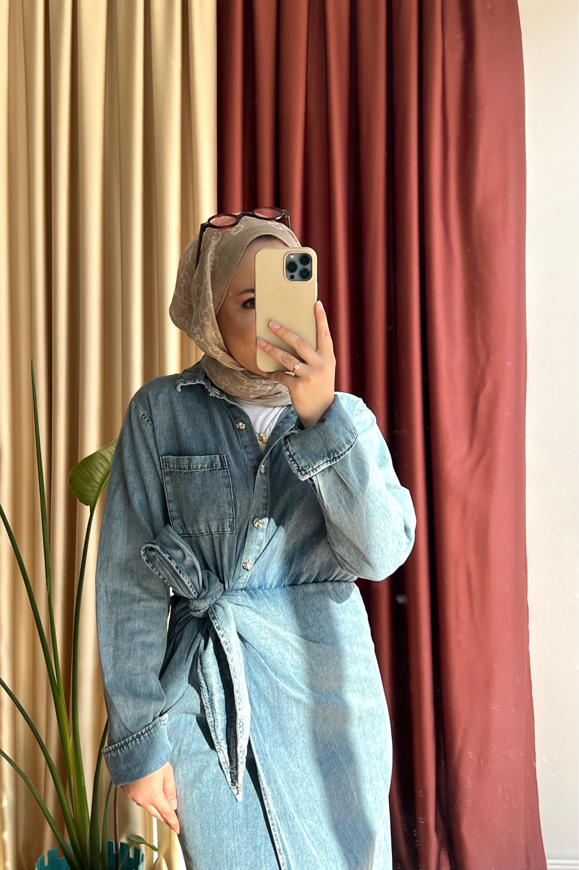 Mia Bağlamalı Kot Elbise-buz Mavisi - Vakronline modelleri Vakronline tesettür giyim koleksiyonunun en şık parçaları arasında yer alıyor. Modern tasarımı ve rahat kalıbı ile hem günlük yaşamda hem de özel günlerde tercih ediliyor. Vakronline kalitesiyle sunulan bu ürün, zarif detayları ve kumaş kalitesi ile kullanıcıların beğenisini kazanıyor. Yeni sezon trendlerini yansıtan bu parçalar ile stilinize tesettür modasında şıklık katabilirsiniz. Vakronline güvencesiyle hızlı kargo ve kolay iade imkânı da sizleri bekliyor.