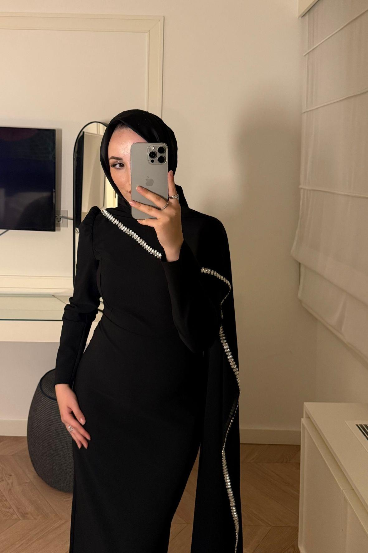 Milena Taşlı Premium Elbise-Siyah(Ön sipariş)