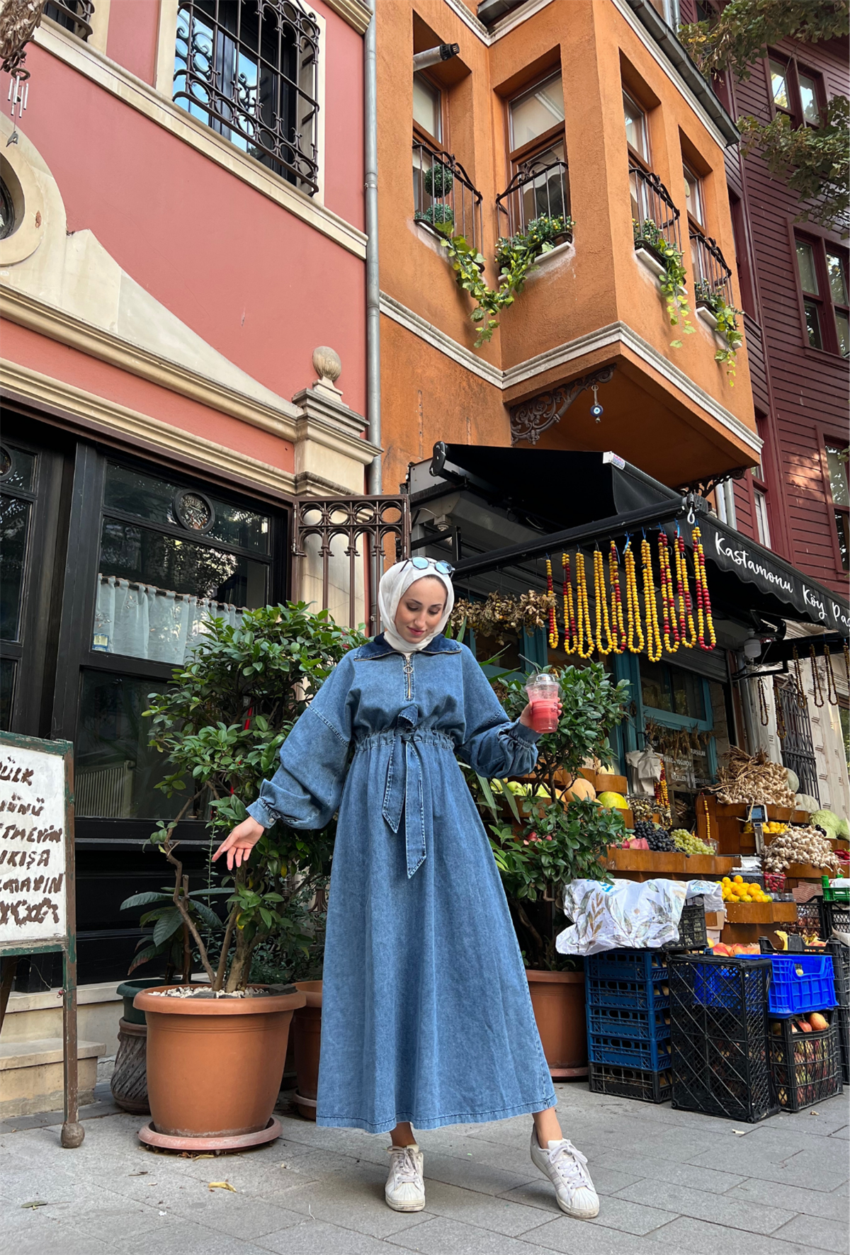 Mi̇on Fermuarli Kemerli̇ Kot Elbi̇se Koyu Mavi̇ - Vakronline modelleri Vakronline tesettür giyim koleksiyonunun en şık parçaları arasında yer alıyor. Modern tasarımı ve rahat kalıbı ile hem günlük yaşamda hem de özel günlerde tercih ediliyor. Vakronline kalitesiyle sunulan bu ürün, zarif detayları ve kumaş kalitesi ile kullanıcıların beğenisini kazanıyor. Yeni sezon trendlerini yansıtan bu parçalar ile stilinize tesettür modasında şıklık katabilirsiniz. Vakronline güvencesiyle hızlı kargo ve kolay iade imkânı da sizleri bekliyor.
