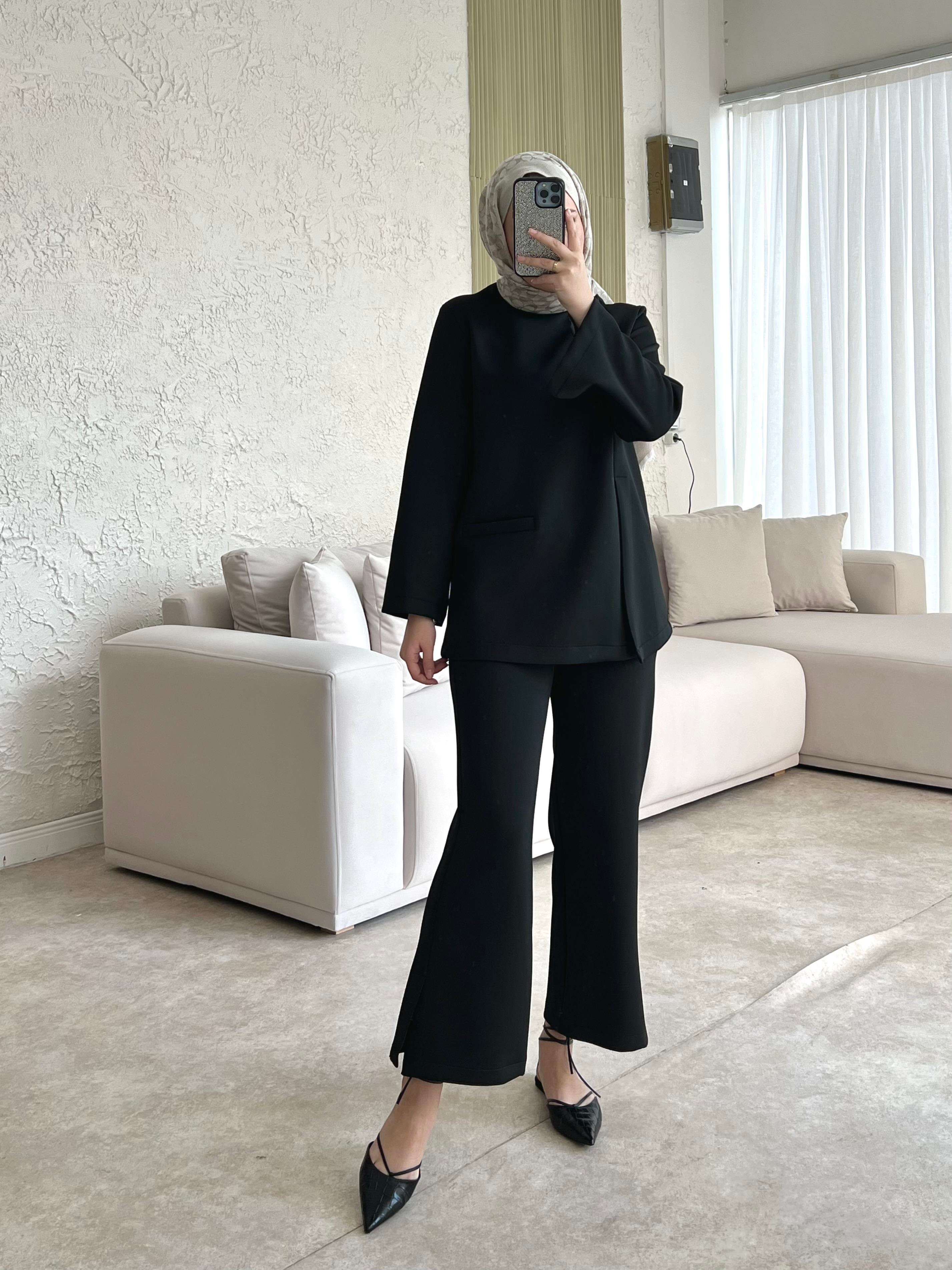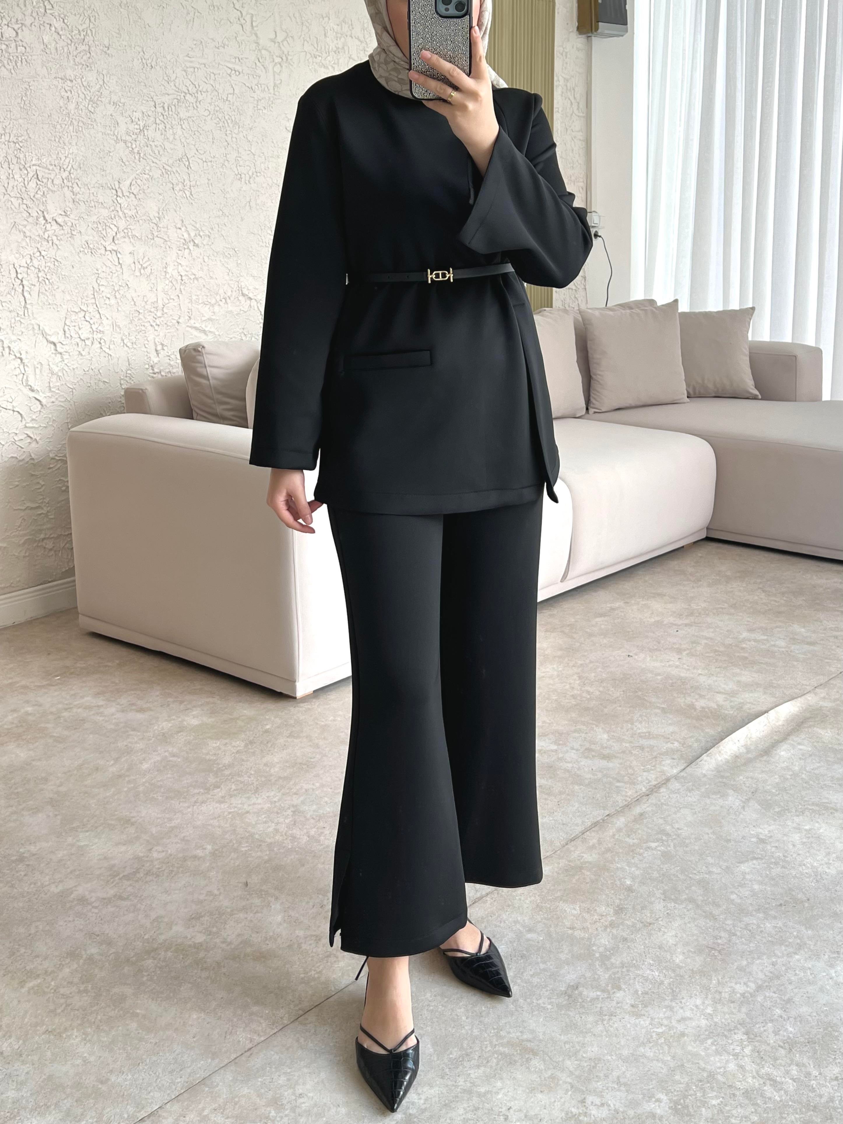 Moi Scuba İkili Takım Pantolonlu-siyah - Vakronline modelleri Vakronline tesettür giyim koleksiyonunun en şık parçaları arasında yer alıyor. Modern tasarımı ve rahat kalıbı ile hem günlük yaşamda hem de özel günlerde tercih ediliyor. Vakronline kalitesiyle sunulan bu ürün, zarif detayları ve kumaş kalitesi ile kullanıcıların beğenisini kazanıyor. Yeni sezon trendlerini yansıtan bu parçalar ile stilinize tesettür modasında şıklık katabilirsiniz. Vakronline güvencesiyle hızlı kargo ve kolay iade imkânı da sizleri bekliyor.