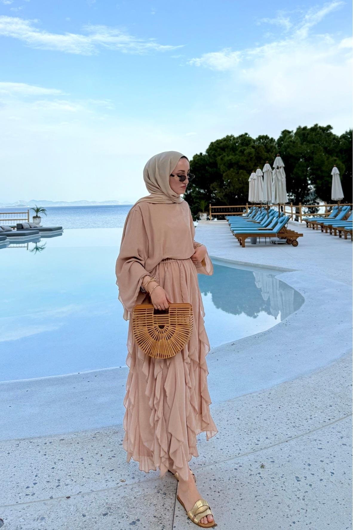 Mour Etekli Takım-bej - Vakronline modelleri Vakronline tesettür giyim koleksiyonunun en şık parçaları arasında yer alıyor. Modern tasarımı ve rahat kalıbı ile hem günlük yaşamda hem de özel günlerde tercih ediliyor. Vakronline kalitesiyle sunulan bu ürün, zarif detayları ve kumaş kalitesi ile kullanıcıların beğenisini kazanıyor. Yeni sezon trendlerini yansıtan bu parçalar ile stilinize tesettür modasında şıklık katabilirsiniz. Vakronline güvencesiyle hızlı kargo ve kolay iade imkânı da sizleri bekliyor.
