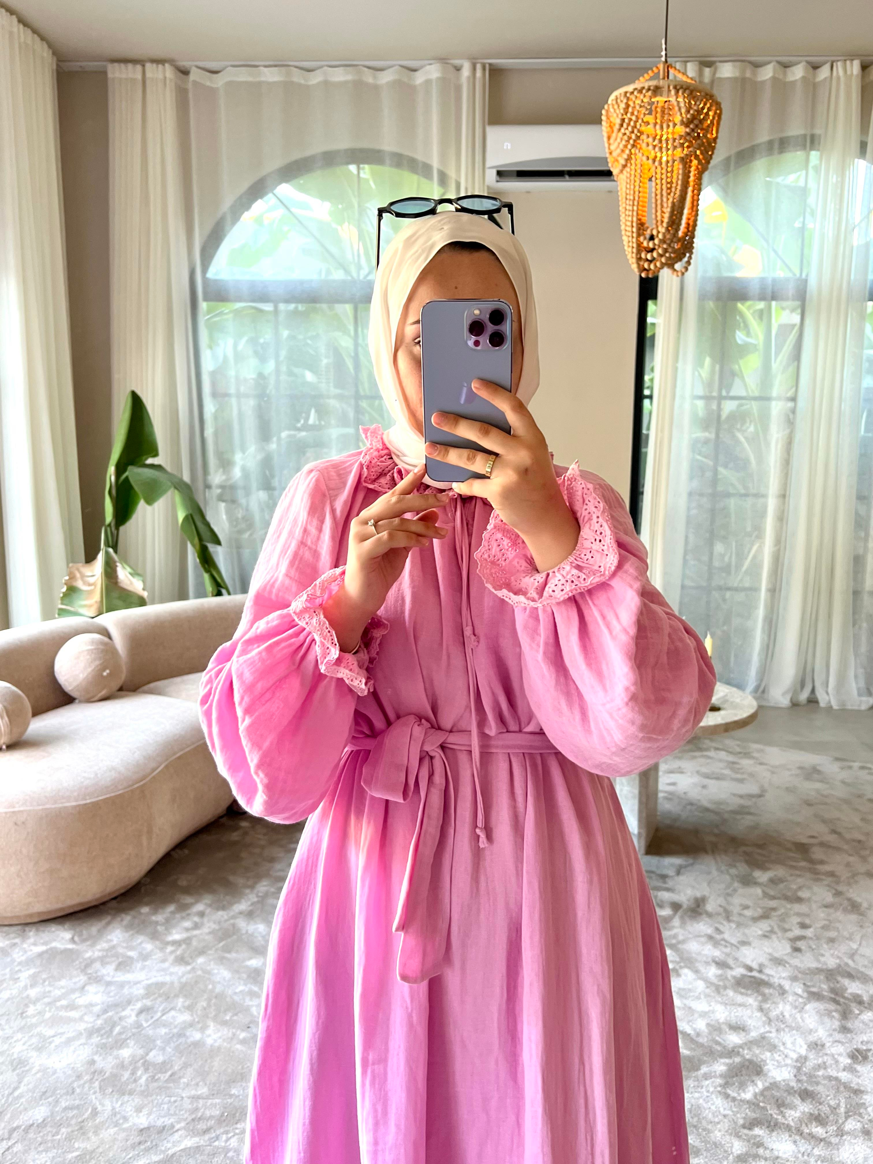Müslin Detaylı Elbise-pembe - Vakronline modelleri Vakronline tesettür giyim koleksiyonunun en şık parçaları arasında yer alıyor. Modern tasarımı ve rahat kalıbı ile hem günlük yaşamda hem de özel günlerde tercih ediliyor. Vakronline kalitesiyle sunulan bu ürün, zarif detayları ve kumaş kalitesi ile kullanıcıların beğenisini kazanıyor. Yeni sezon trendlerini yansıtan bu parçalar ile stilinize tesettür modasında şıklık katabilirsiniz. Vakronline güvencesiyle hızlı kargo ve kolay iade imkânı da sizleri bekliyor.