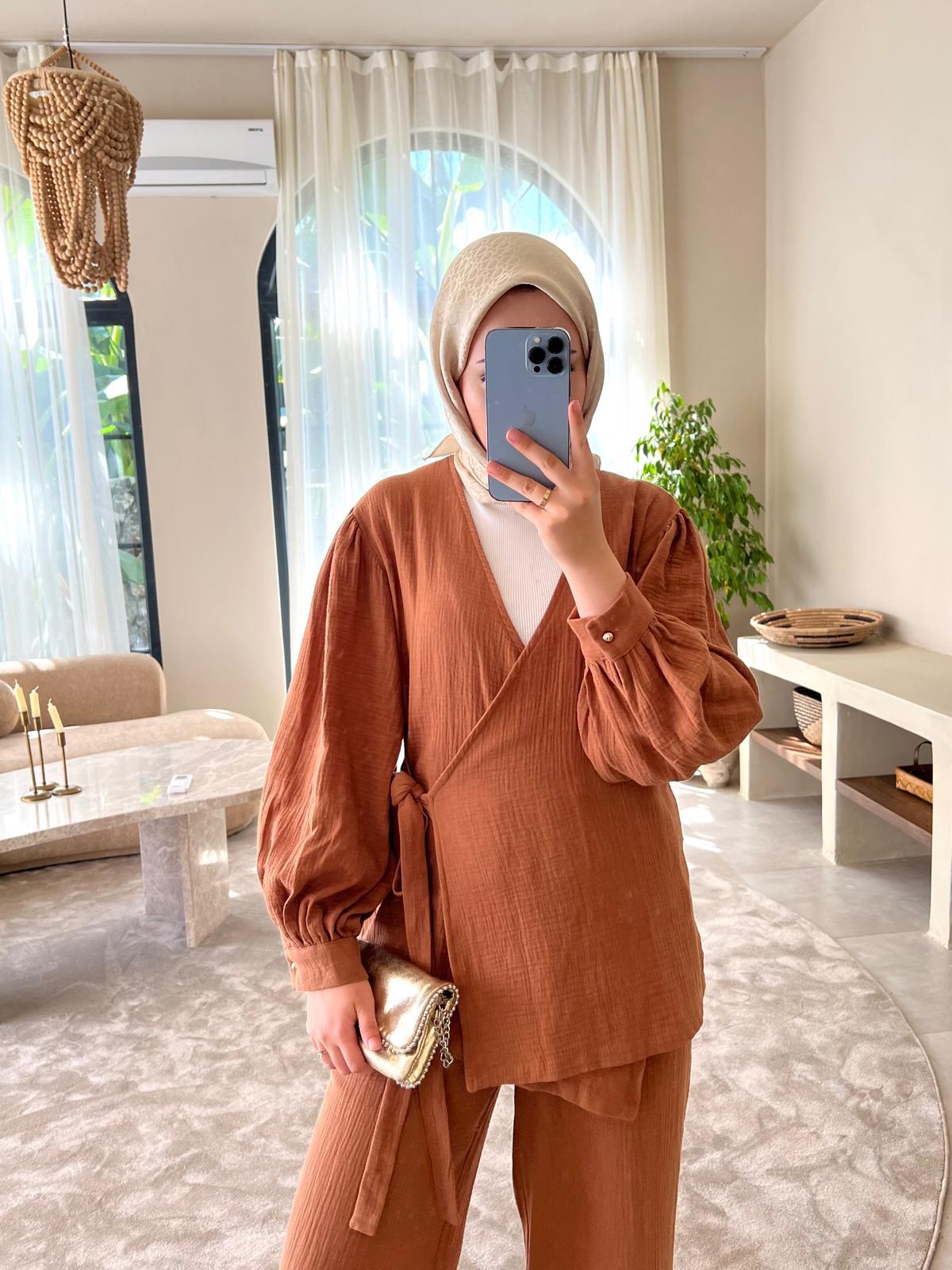 Müslin Kumaş İkili Takım-kiremit - Vakronline modelleri Vakronline tesettür giyim koleksiyonunun en şık parçaları arasında yer alıyor. Modern tasarımı ve rahat kalıbı ile hem günlük yaşamda hem de özel günlerde tercih ediliyor. Vakronline kalitesiyle sunulan bu ürün, zarif detayları ve kumaş kalitesi ile kullanıcıların beğenisini kazanıyor. Yeni sezon trendlerini yansıtan bu parçalar ile stilinize tesettür modasında şıklık katabilirsiniz. Vakronline güvencesiyle hızlı kargo ve kolay iade imkânı da sizleri bekliyor.