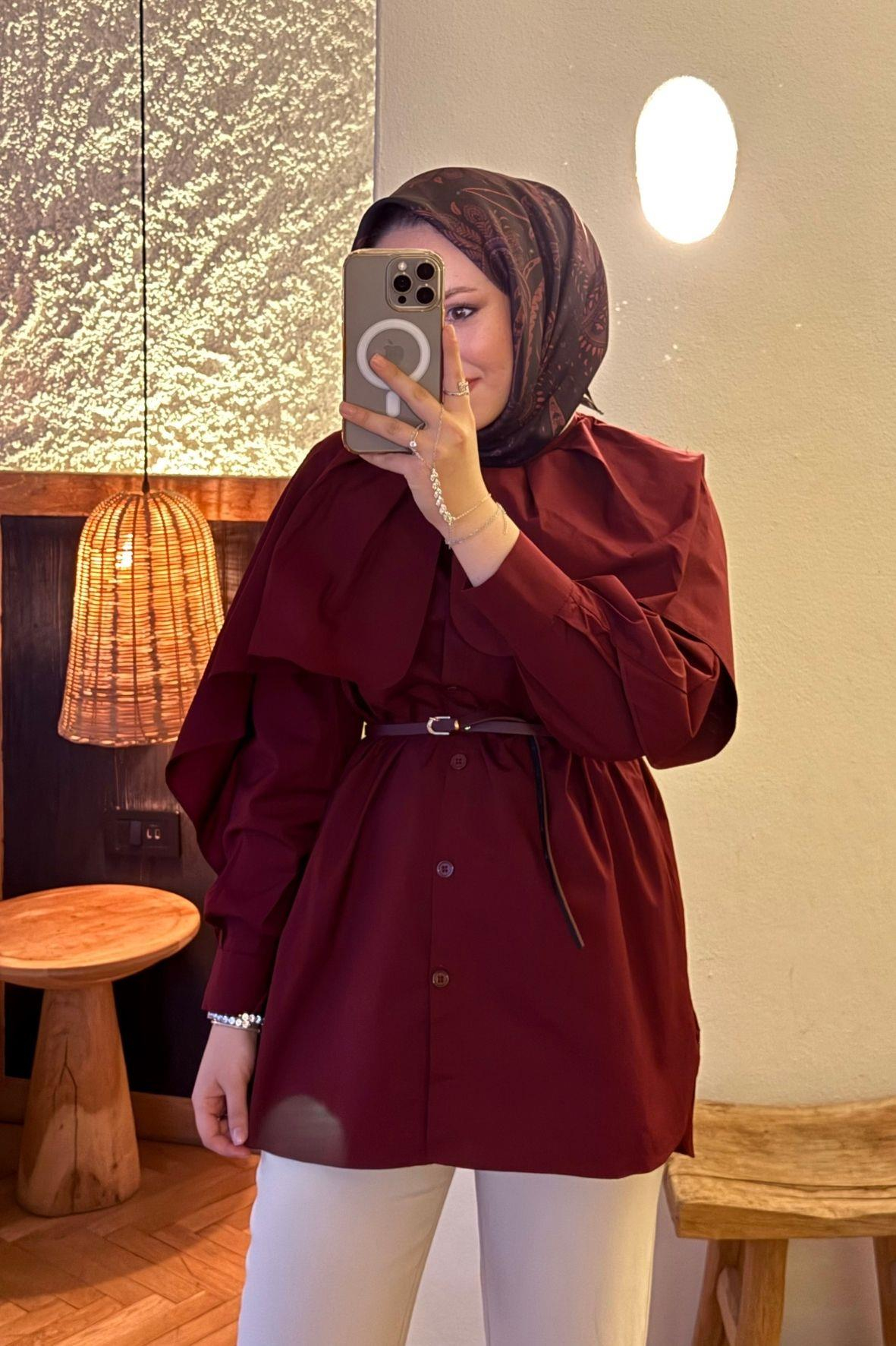 Pelerinli Gömlek-bordo - Vakronline modelleri Vakronline tesettür giyim koleksiyonunun en şık parçaları arasında yer alıyor. Modern tasarımı ve rahat kalıbı ile hem günlük yaşamda hem de özel günlerde tercih ediliyor. Vakronline kalitesiyle sunulan bu ürün, zarif detayları ve kumaş kalitesi ile kullanıcıların beğenisini kazanıyor. Yeni sezon trendlerini yansıtan bu parçalar ile stilinize tesettür modasında şıklık katabilirsiniz. Vakronline güvencesiyle hızlı kargo ve kolay iade imkânı da sizleri bekliyor.