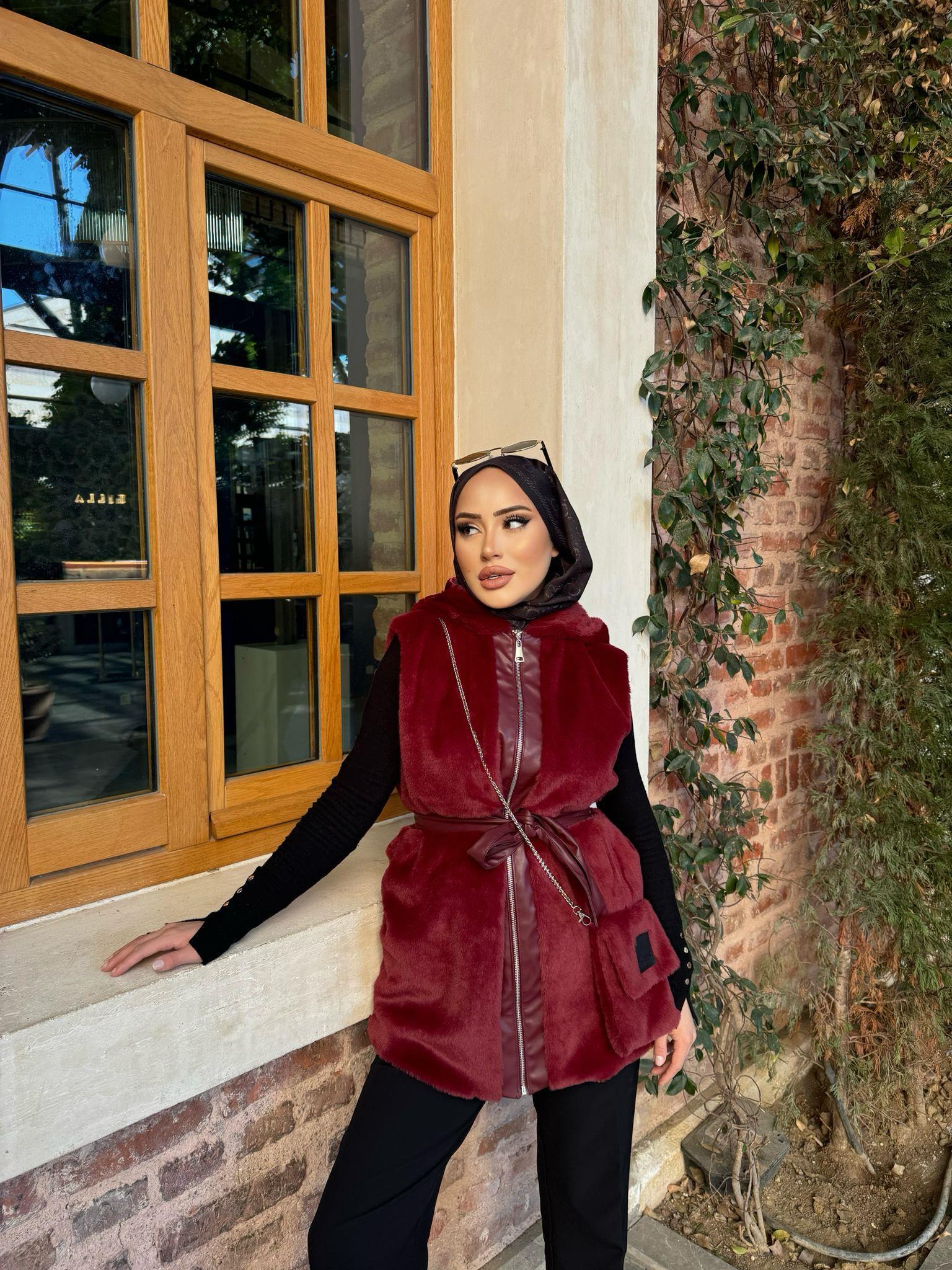 Peluş Kürk Yelek Çantalı-bordo - Vakronline modelleri Vakronline tesettür giyim koleksiyonunun en şık parçaları arasında yer alıyor. Modern tasarımı ve rahat kalıbı ile hem günlük yaşamda hem de özel günlerde tercih ediliyor. Vakronline kalitesiyle sunulan bu ürün, zarif detayları ve kumaş kalitesi ile kullanıcıların beğenisini kazanıyor. Yeni sezon trendlerini yansıtan bu parçalar ile stilinize tesettür modasında şıklık katabilirsiniz. Vakronline güvencesiyle hızlı kargo ve kolay iade imkânı da sizleri bekliyor.