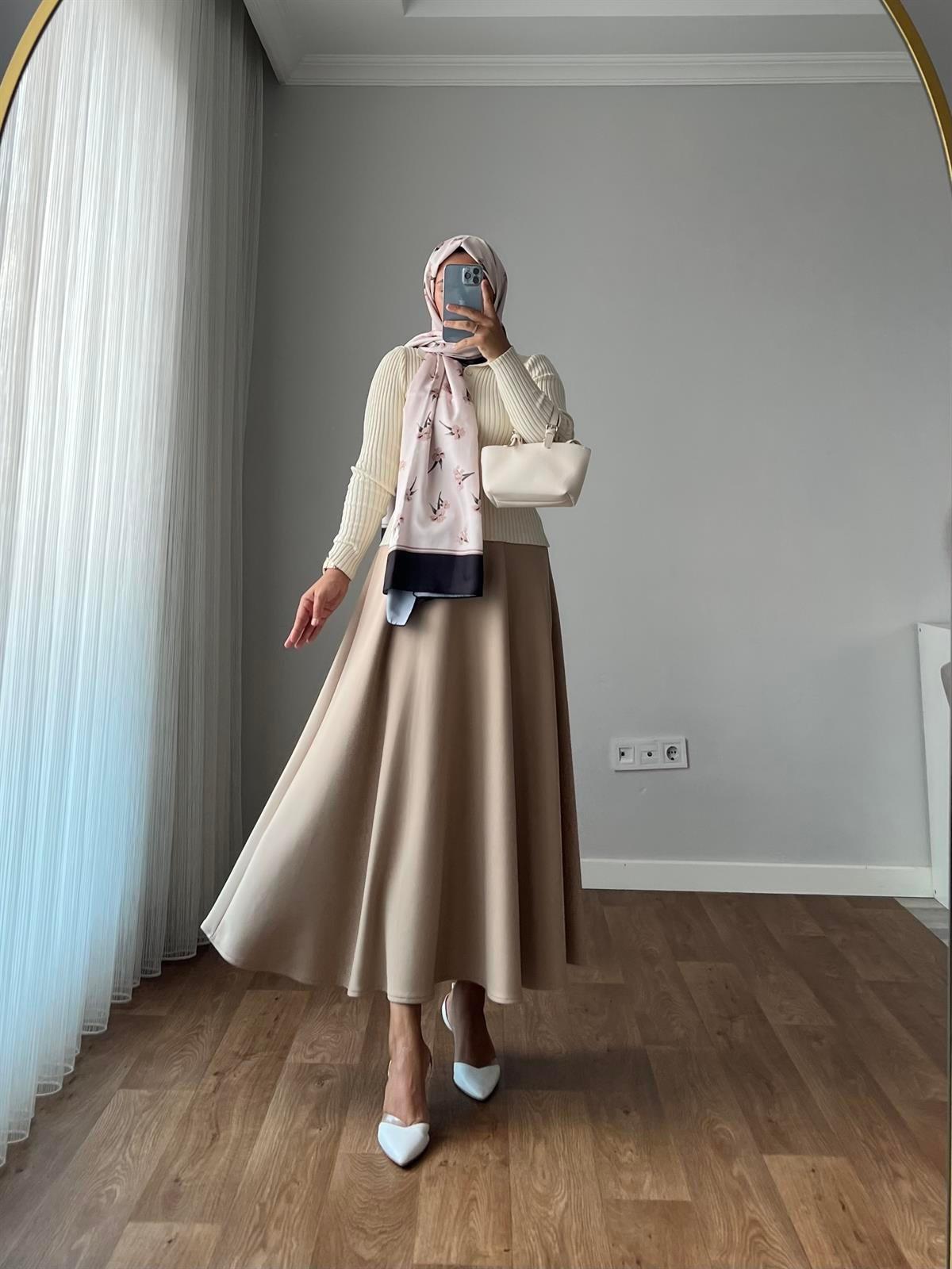 Scuba Kloş Etek-bej - Vakronline modelleri Vakronline tesettür giyim koleksiyonunun en şık parçaları arasında yer alıyor. Modern tasarımı ve rahat kalıbı ile hem günlük yaşamda hem de özel günlerde tercih ediliyor. Vakronline kalitesiyle sunulan bu ürün, zarif detayları ve kumaş kalitesi ile kullanıcıların beğenisini kazanıyor. Yeni sezon trendlerini yansıtan bu parçalar ile stilinize tesettür modasında şıklık katabilirsiniz. Vakronline güvencesiyle hızlı kargo ve kolay iade imkânı da sizleri bekliyor.
