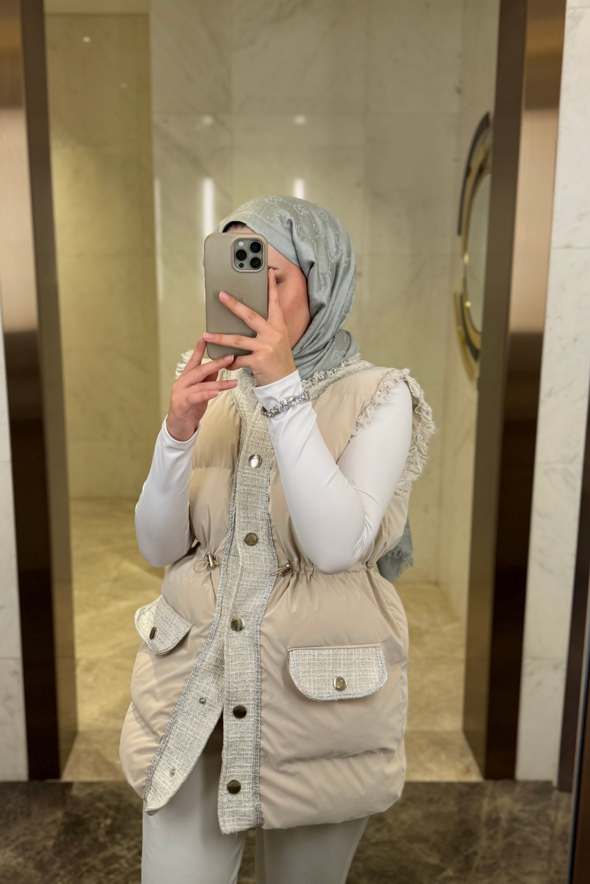 Cep ve Ön kısımda Simli tuvit kumaş kullanılmıştır.