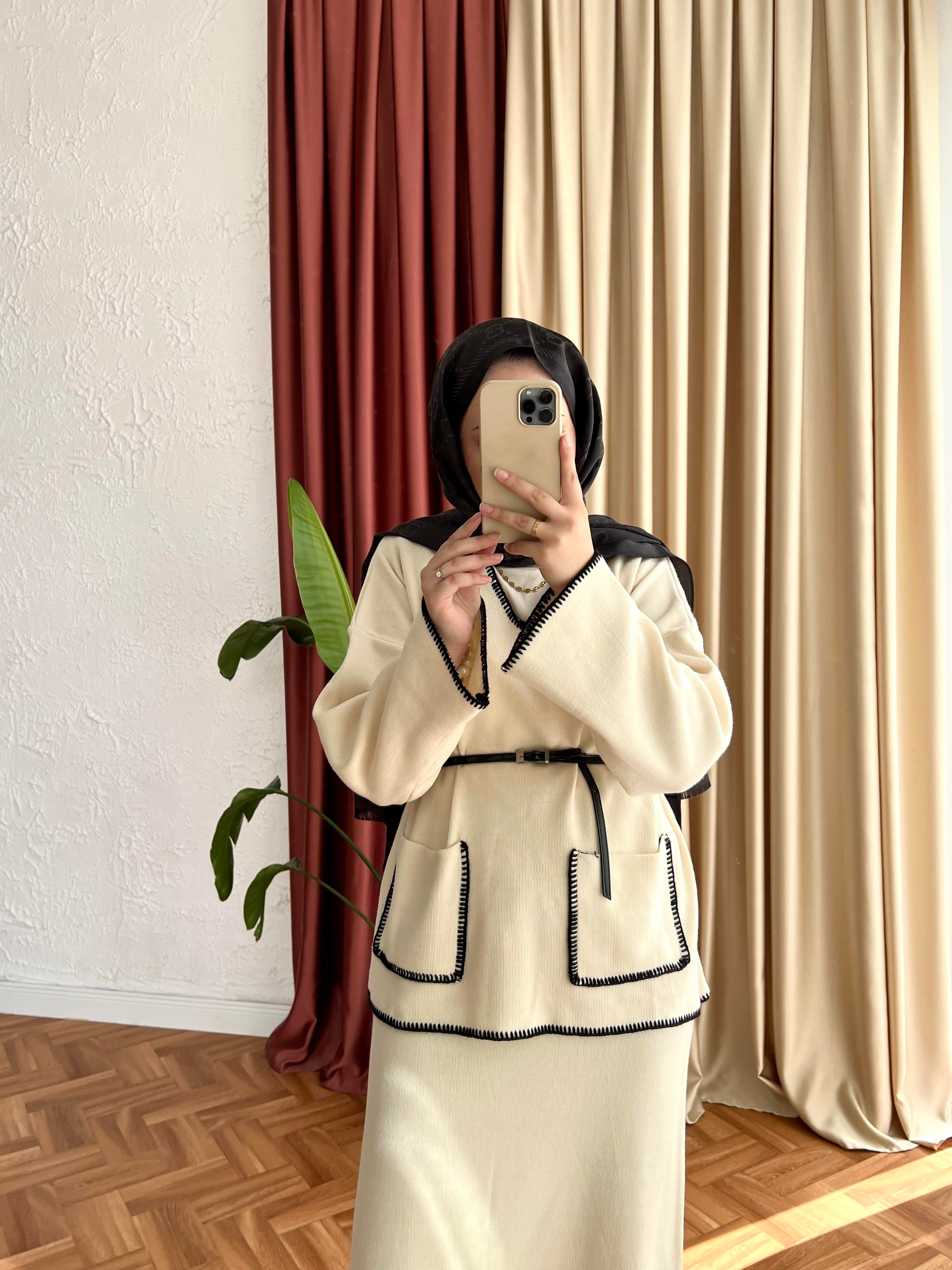 Soof Çizgili Etekli Triko Takım-bej - Vakronline modelleri Vakronline tesettür giyim koleksiyonunun en şık parçaları arasında yer alıyor. Modern tasarımı ve rahat kalıbı ile hem günlük yaşamda hem de özel günlerde tercih ediliyor. Vakronline kalitesiyle sunulan bu ürün, zarif detayları ve kumaş kalitesi ile kullanıcıların beğenisini kazanıyor. Yeni sezon trendlerini yansıtan bu parçalar ile stilinize tesettür modasında şıklık katabilirsiniz. Vakronline güvencesiyle hızlı kargo ve kolay iade imkânı da sizleri bekliyor.