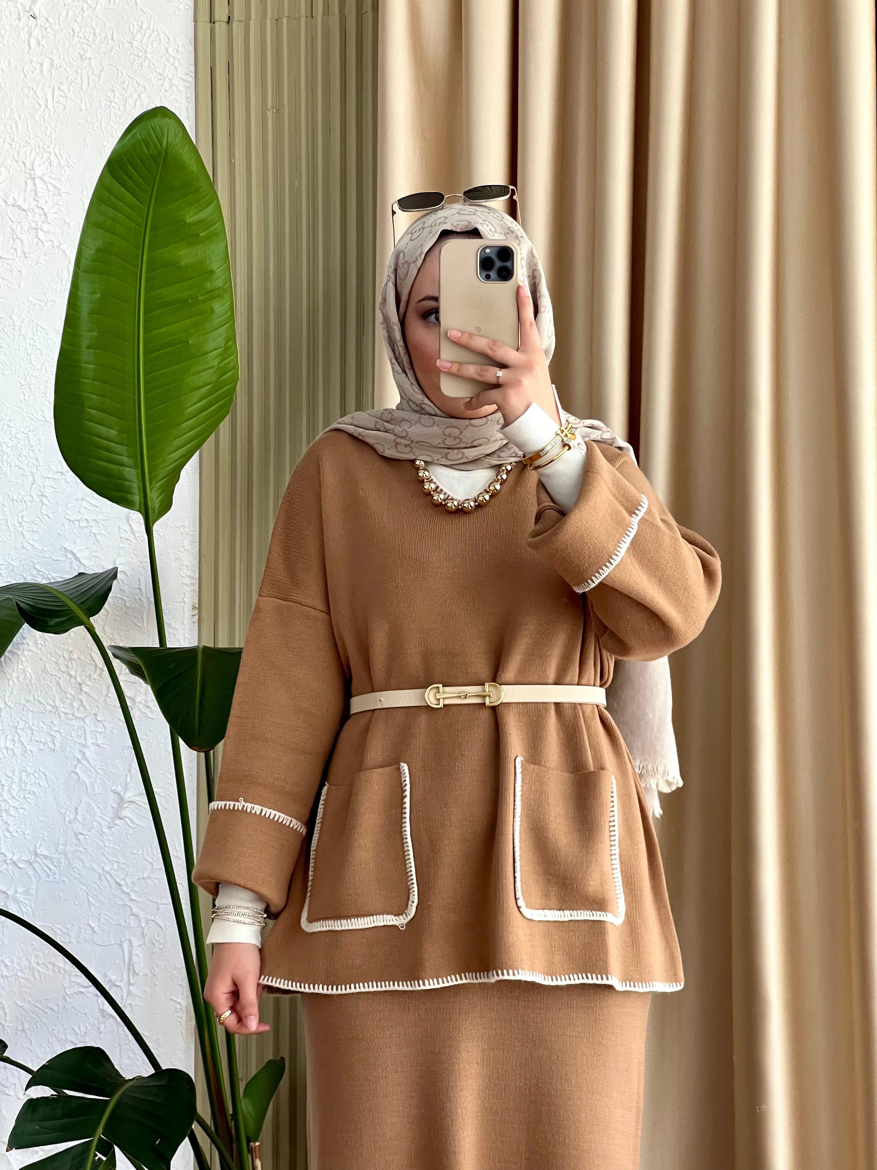 Soof Çizgili Etekli Triko Takım-camel - Vakronline modelleri Vakronline tesettür giyim koleksiyonunun en şık parçaları arasında yer alıyor. Modern tasarımı ve rahat kalıbı ile hem günlük yaşamda hem de özel günlerde tercih ediliyor. Vakronline kalitesiyle sunulan bu ürün, zarif detayları ve kumaş kalitesi ile kullanıcıların beğenisini kazanıyor. Yeni sezon trendlerini yansıtan bu parçalar ile stilinize tesettür modasında şıklık katabilirsiniz. Vakronline güvencesiyle hızlı kargo ve kolay iade imkânı da sizleri bekliyor.