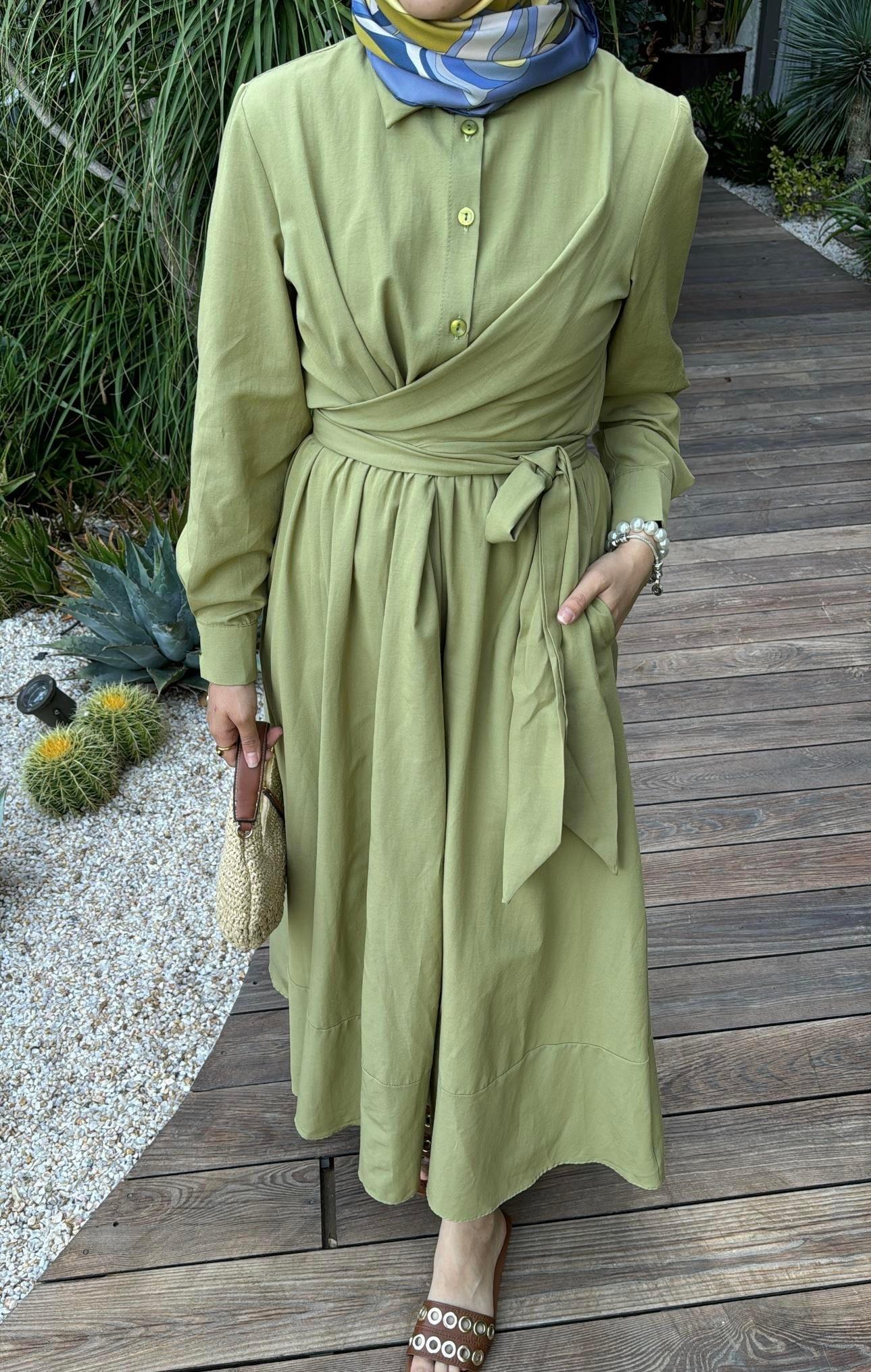 Tasarım Kuşaklı Zarif Elbise Olive Çağla - Vakronline modelleri Vakronline tesettür giyim koleksiyonunun en şık parçaları arasında yer alıyor. Modern tasarımı ve rahat kalıbı ile hem günlük yaşamda hem de özel günlerde tercih ediliyor. Vakronline kalitesiyle sunulan bu ürün, zarif detayları ve kumaş kalitesi ile kullanıcıların beğenisini kazanıyor. Yeni sezon trendlerini yansıtan bu parçalar ile stilinize tesettür modasında şıklık katabilirsiniz. Vakronline güvencesiyle hızlı kargo ve kolay iade imkânı da sizleri bekliyor.