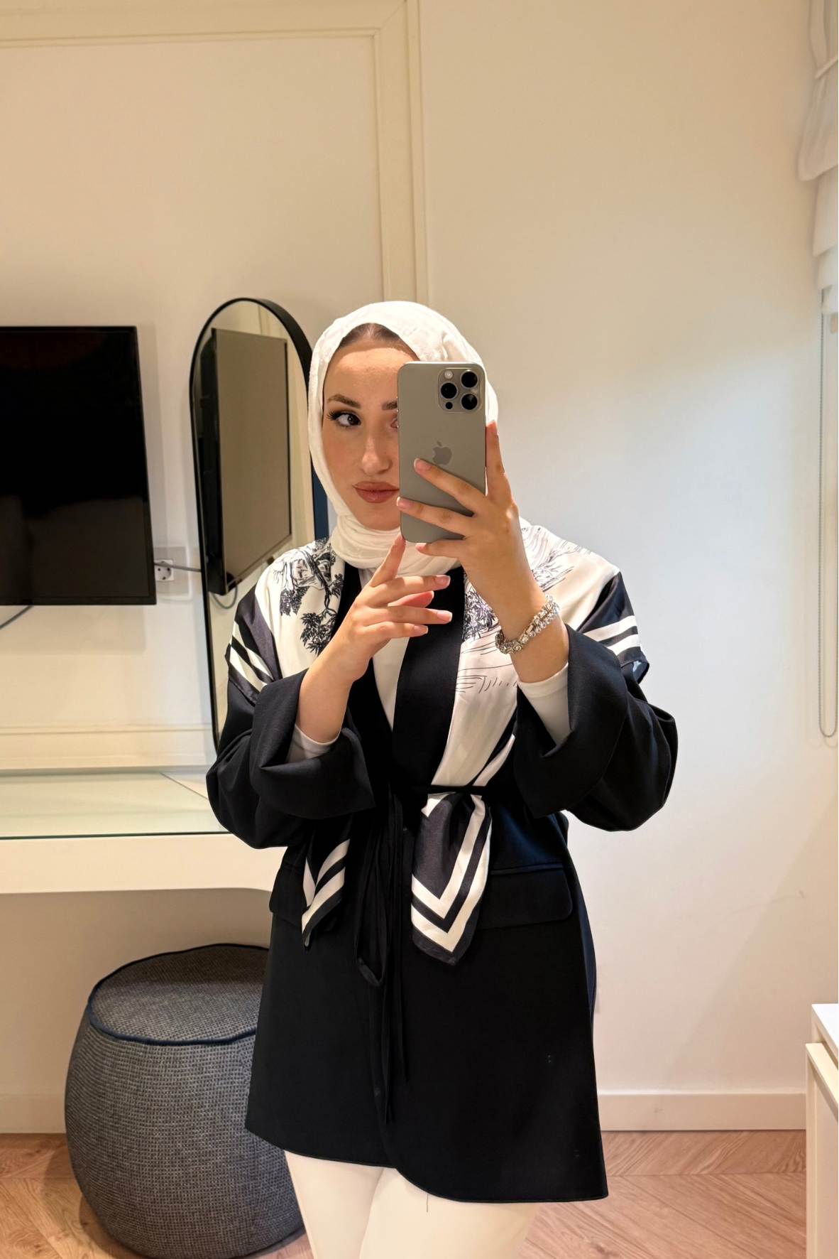 Tesettür Kol Yırtmaç Detaylı Ceket-Lacivert