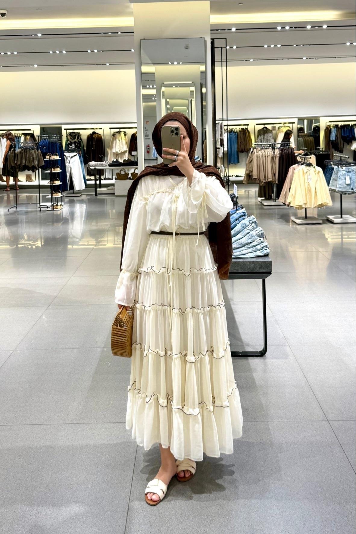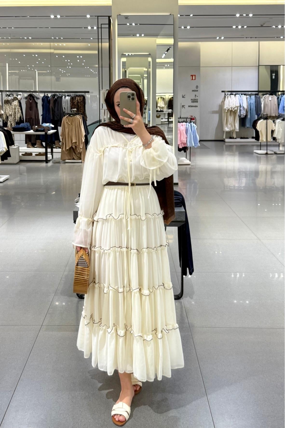 Tesettür Sue Elbise-Krem