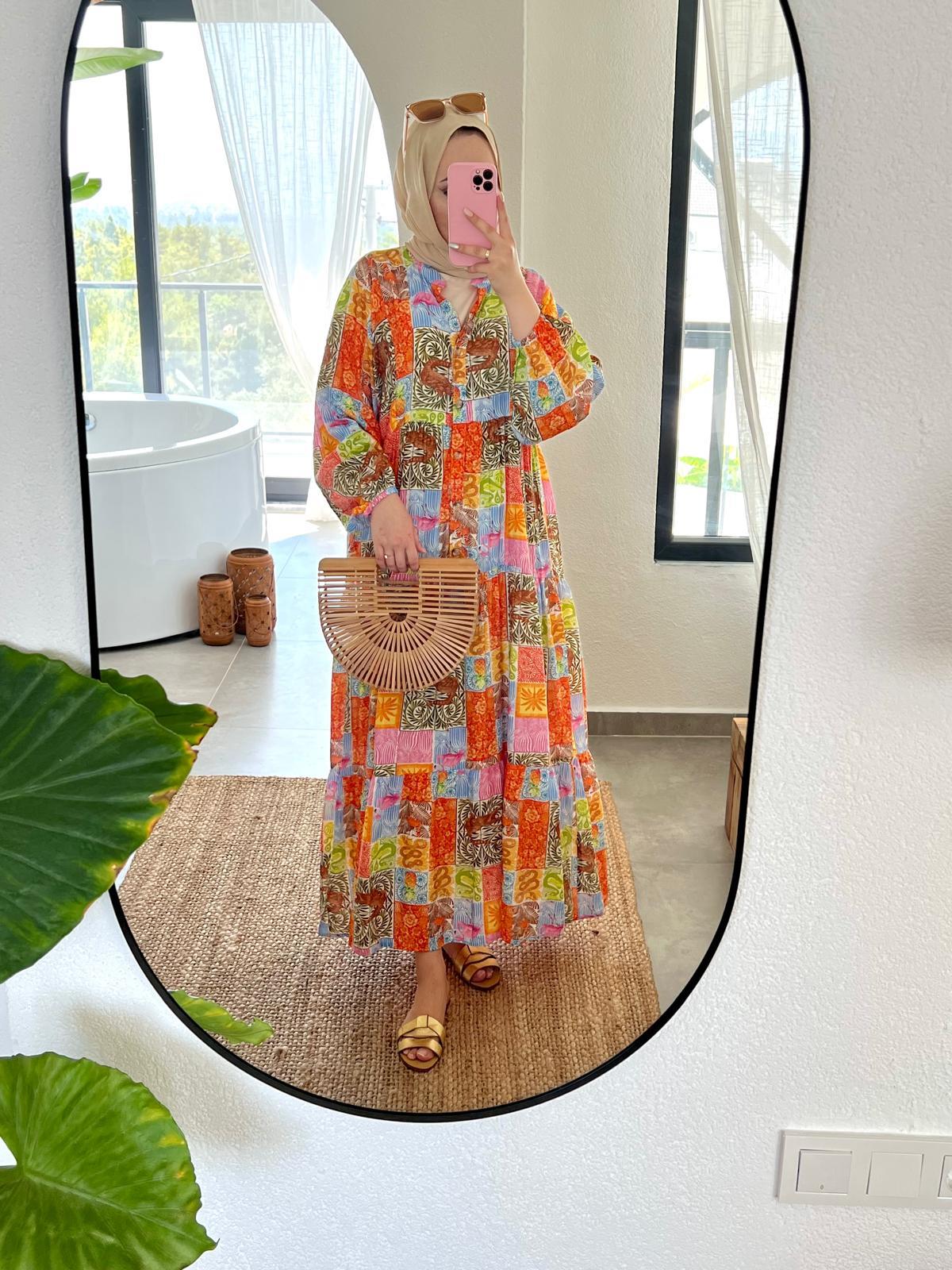 Turuncu Desenli Elbise - Vakronline modelleri Vakronline tesettür giyim koleksiyonunun en şık parçaları arasında yer alıyor. Modern tasarımı ve rahat kalıbı ile hem günlük yaşamda hem de özel günlerde tercih ediliyor. Vakronline kalitesiyle sunulan bu ürün, zarif detayları ve kumaş kalitesi ile kullanıcıların beğenisini kazanıyor. Yeni sezon trendlerini yansıtan bu parçalar ile stilinize tesettür modasında şıklık katabilirsiniz. Vakronline güvencesiyle hızlı kargo ve kolay iade imkânı da sizleri bekliyor.